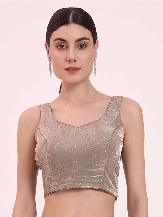 Women’s Beige Organza Crushed Siroski Work Embellished Border Saree With Unstitched Blouse