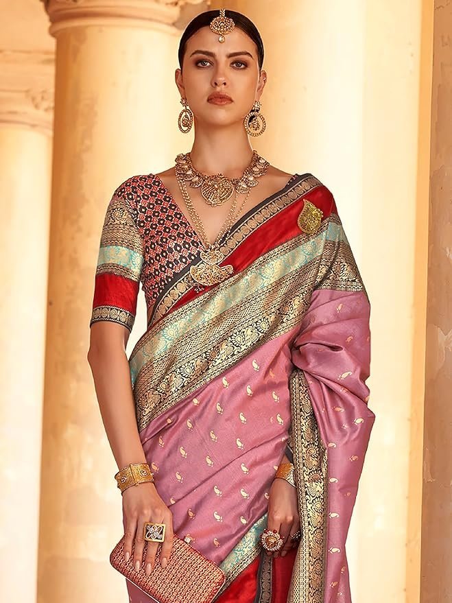 Women’s Woven Design Peacock Print Silk Blend Saree with Unstitched Blouse Piece
